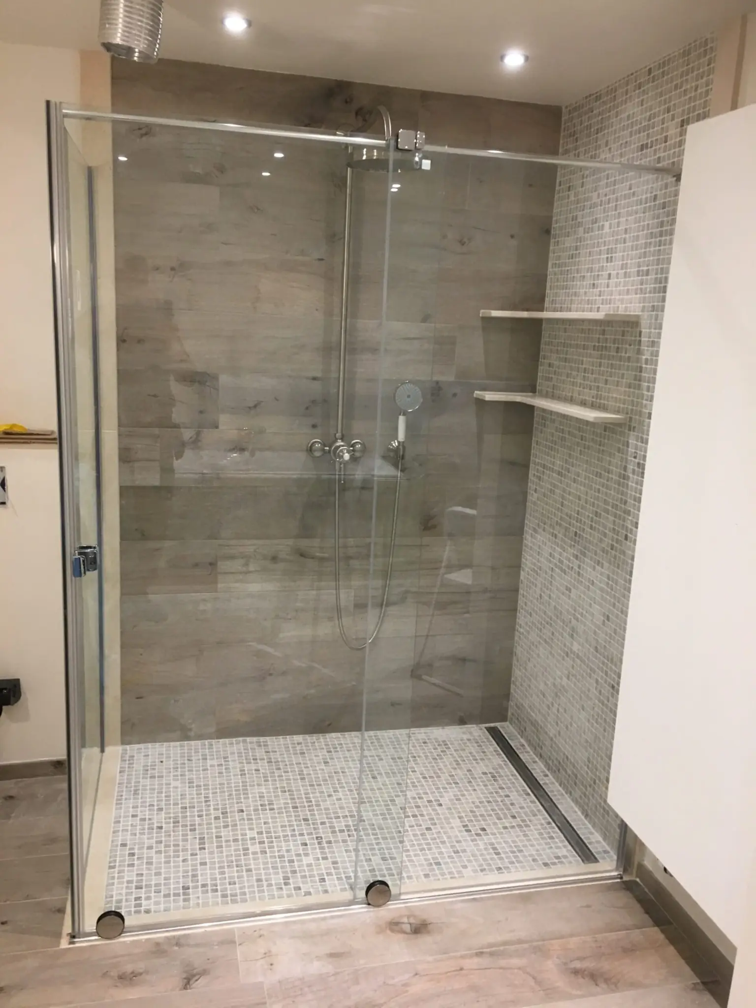 Découvrez nos réalisations en douches en verre sur mesure, pensées pour allier esthétisme et praticité. De la paroi de douche minimaliste à la douche italienne en verre contemporaine, chaque projet illustre notre savoir-faire et la qualité de nos installations. Nos parois allient design moderne, confort et luminosité. Réalisées sur mesure, elles s’intègrent parfaitement à votre salle de bain avec des matériaux durables.